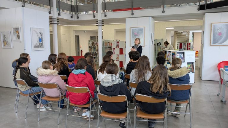 Pour ce dernier semestre, Audrey et Valérie ont concocté un programme riche en diversité : ateliers créatifs pour les vacances de Toussaint, braderie solidaire au profit du Téléthon tout le mois de novembre, Soirée Des Livr’&Vous le 12 novembre et au mois de décembre, quelques surprises !!! Suivant la programmation de Gérard Marty, la Médiathèque est heureuse d’accueillir l’exposition de Marie-Hélène Audouard « Dessins d’ados » jusqu’au 31 octobre. L’occasion était trop belle de convier les collèges de Rignac à venir la visiter. Ainsi, les classes de 3e ont eu la chance de profiter de la présence de l’artiste pour échanger, partager autour de ces portraits et poursuivre un travail avec leur professeur d’arts plastiques et/ou de français. Une restitution devrait être faite à la médiathèque d’ici la fin de l’année.