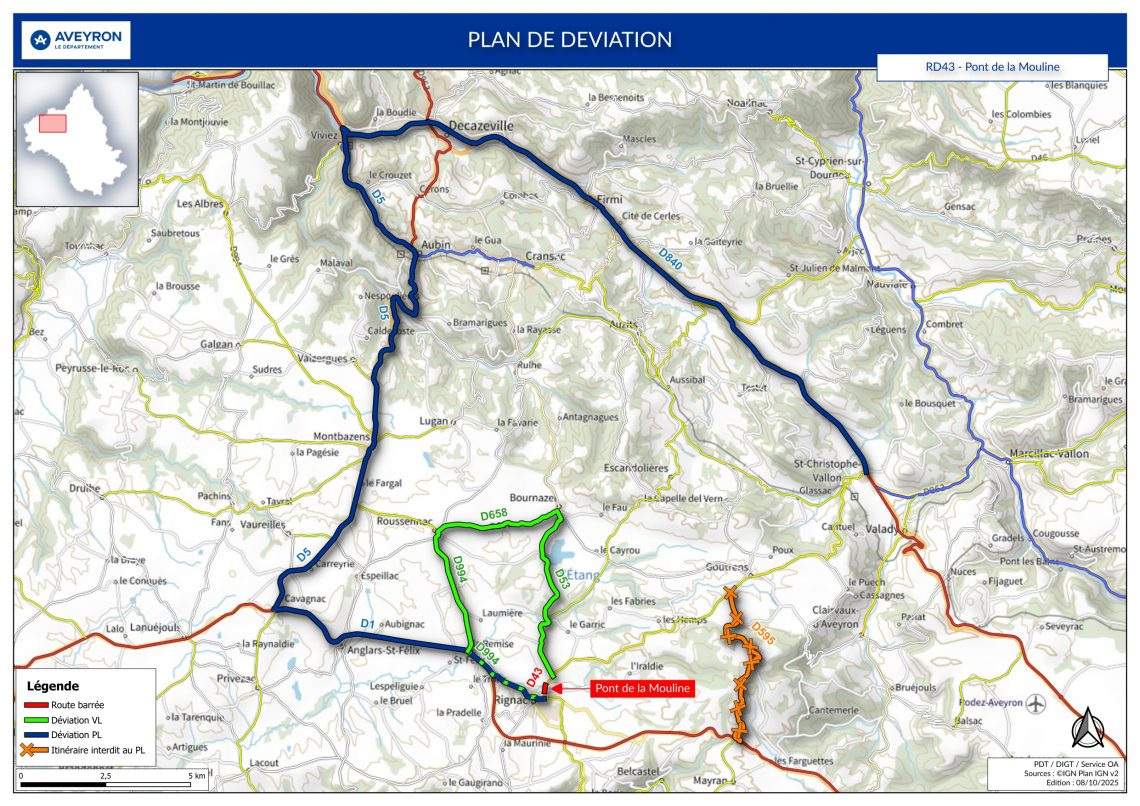 Le Département a programmé les travaux de réparation du pont de la Mouline sur la RD43, commune de Rignac.